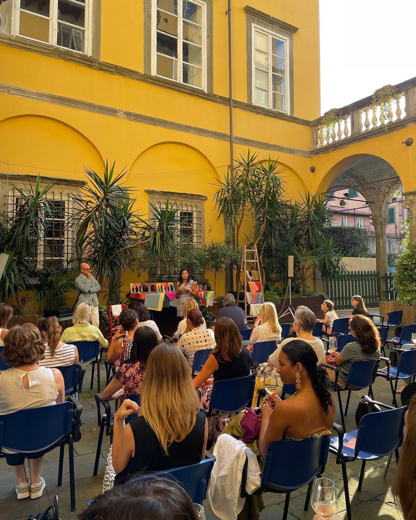 All'interno di uno dei più bei palazzi della città, si riscopre un cortile rinascimentale che si scorge inaspettatamente dalla centralissima via Fillungo. I Negozi Il Panda e Premium hanno dato un nuovo slancio allo spazio di Palazzo Sani (sede storica di Confcommercio Lucca) di per sé già bellissimo ed oggi ancora più attraente, grazie alla cornice di verde che vede piante tropicali mixate ad altre della nostra tradizione, come ulivi e piccole graminacee accanto alle classiche aromatiche. Il “verde” non è dato solo dalla vegetazione che amplifica la bellezza delle volte, delle colonne e soprattutto della splendida terrazza, ma anche dal valore del messaggio ECO che Il Panda e Premium vogliono dare. Come ad esempio: mettendo a disposizione di tutti (non solo dei propri clienti) degli appendini nuovi, che nei negozi di abbigliamento vengono solitamente cestinati dopo la vendita dei capi. Federico Lanza da sempre attento alle tematiche ecologico-ambientali ha pensato che ancor più in questo momento storico dove molti, soprattutto nel mondo del fashion si dicono ecofriendly, bisognasse fare qualcosa di concreto. “Mi da veramente fastidio sentire dichiarazioni e annunci nella direzione giusta spesso dettati dal marketing, ma a cui non seguono comportamenti coerenti. Noi, nel nostro piccolo, vogliamo lanciare un messaggio e dare nuova vita a prodotti che anche se di esiguo valore sono utili in tutte le famiglie e dirottandoli dalla distruzione all'uso quotidiano.” SPAZIO SANI MICHELI, che ricorda nel nome l'antica storia del luogo appartenente alle famiglie di commercianti lucchesi, mira a diventare area di aggregazione e di incontro.